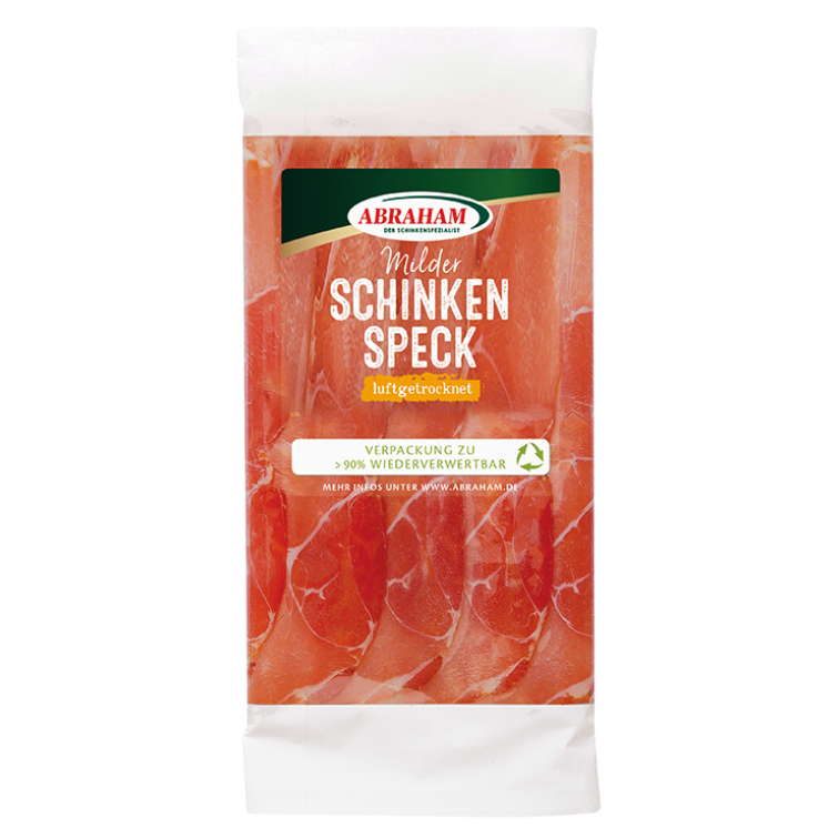Unser Schinkenspeck wird aus dem Hüftstück des Schinkens geschnitten, mild gesalzen und luftgetrocknet. Mit typischer Fettmaserung, rustikal im Charakter und deftig würzig im Geschmack.