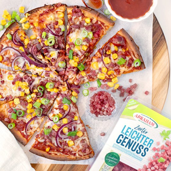 High Protein BBQ Pizza mit Schinkenwürfeln