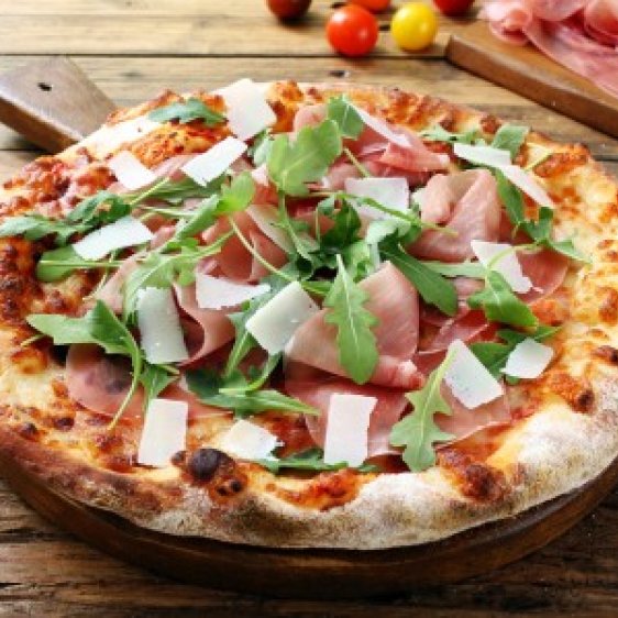 Pizza mit zartem Schinken und Rucola
